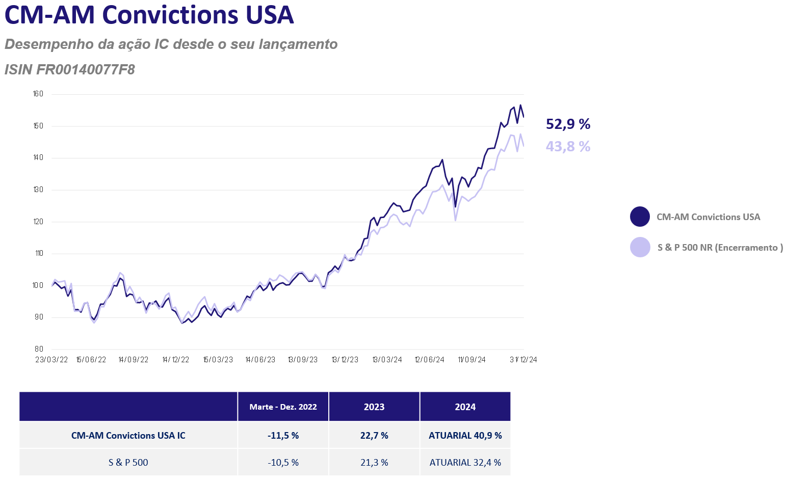 O desempenho passado não é garantia de desempenho futuro. O índice S&P500 Net Return é expresso no fecho, dividendos reinvestidos. Desempenho líquido de comissões de gestão.