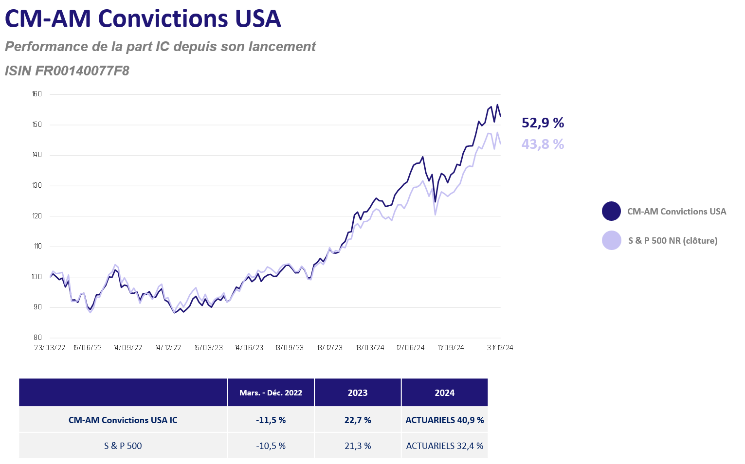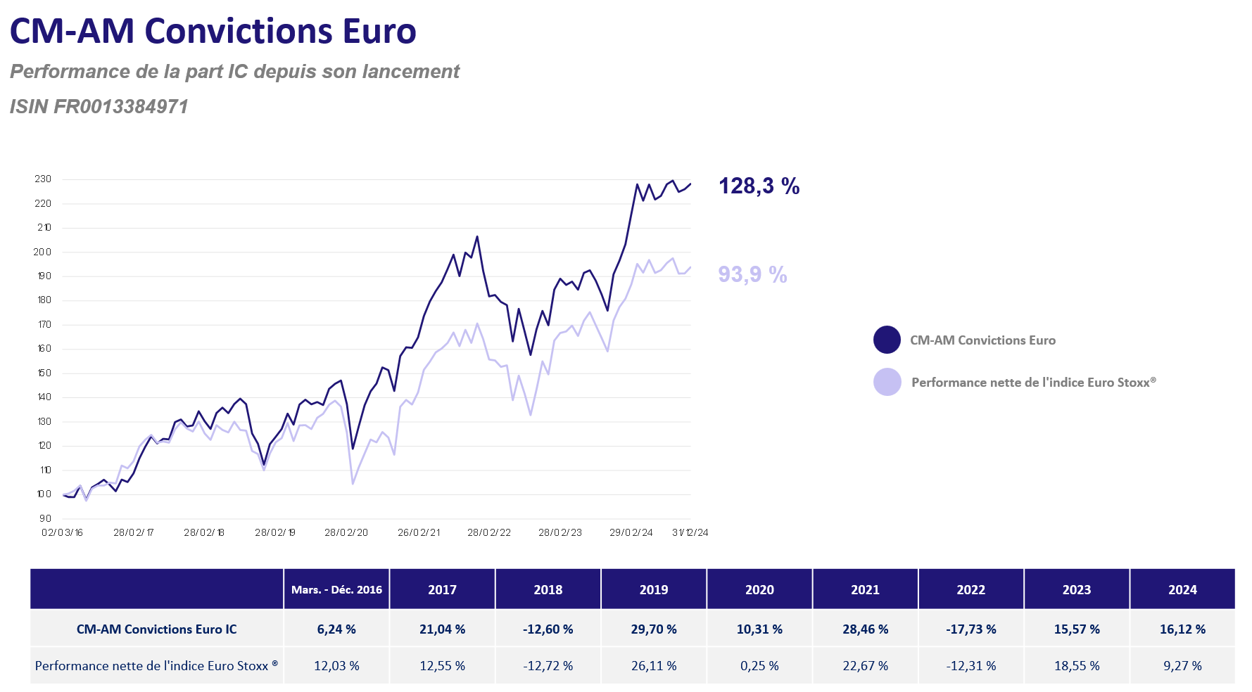 Ceci est un document publicitaire. Le pays d’origine du fonds est France. En Suisse, le représentant est 1741 Fund Solutions AG, Burggraben 16, CH-9000 St.Gallen. L'agent payeur est Tellco Banque SA, Bahnhofstrasse 4, 6430 Schwyz. Le prospectus, les informations clés pour l’investisseur, le règlement ou les statuts, les rapports annuel et semestriel peuvent être obtenus gratuitement auprès du représentant. La performance historique ne représente pas un indicateur de performance actuelle ou future. Les données de performance ne tiennent pas compte des commissions et frais perçus lors de l'émission et du rachat des parts.